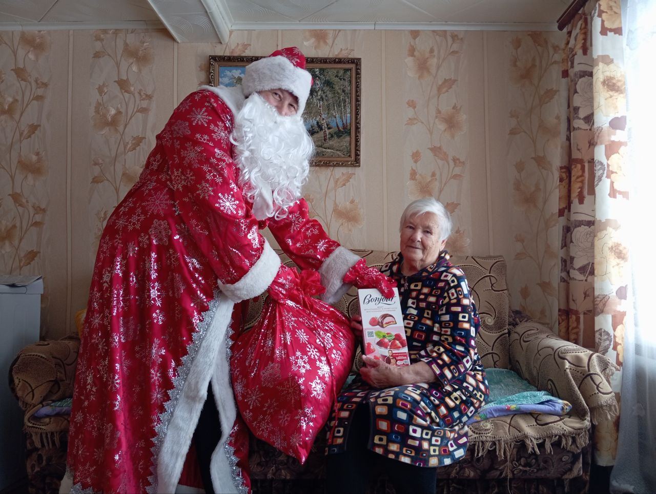 Социальные работники отделения социально-бытового обслуживания на дому № 1,2 провели акцию – поздравление «Пусть праздник всем подарит чудо!», поздравили получателей социальных услуг с Новым 2026 годом, пожелали им мира, счастья, здоровья и подарили небольшие подарки.